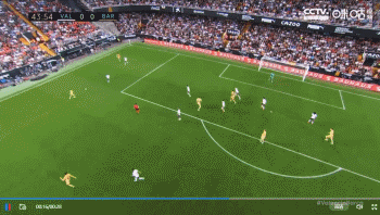 第44分钟,德容左路传到禁区莱万飞身冲顶打在立柱上,瓦伦西亚逃过一劫。