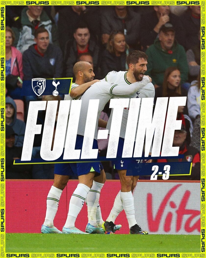 唯彩看球讯 北京时间10月29日晚上22点,英超第14轮,热刺客场3-2逆转伯恩茅斯!热刺0-2落后下3-2大逆转,伯恩茅斯摩尔梅开二度,随后热刺由塞塞尼翁、本-戴维斯和本坦库尔进球。本场后,热刺26分排在第3。