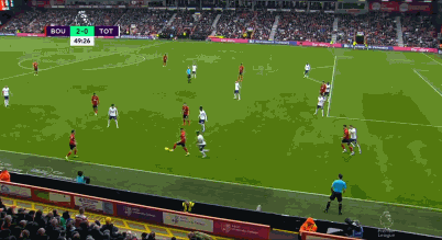 第22分钟,伯恩茅斯反击,索兰克直塞,塔维尼耶右路插上传中,摩尔低射破门!伯恩茅斯1-0!