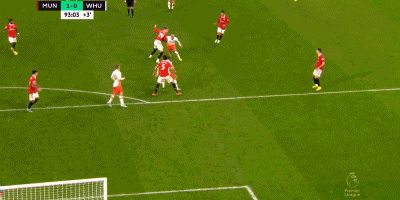 第93分钟,弗纳尔斯右路突破下底传中,鲍文6码处射门被马奎尔挡出。随后莱斯高质量远射,德赫亚神勇扑出。