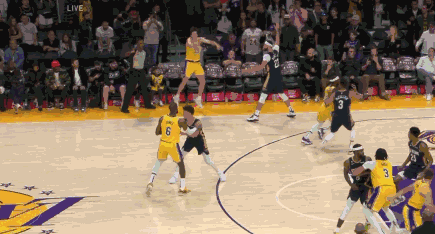 第三节锡安和麦科勒姆联手爆发,两人撑起鹈鹕进攻包揽球队前17分里的15分,加之末段替补轮换上来的球员轰出一波15-4的攻势反超比分。好在最后时刻湖人及时止血回敬6-0的攻势夺回3分领先;末节拉锯战双方一路僵持悬念保留到最后,鹈鹕凭借着锡安的暴扣和罚球反超比分,但新秀丹尼尔斯最后时刻两罚不中给湖人留机会,瑞安在时间仅有1.3秒的情况下投进一记压哨三分,比赛进入加时。