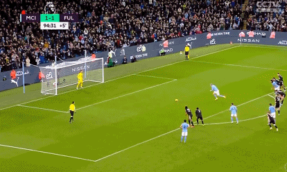 终场伤停补时阶段,德布劳内禁区内拿球时被罗宾逊放倒在地,当值主裁果断判罚点球,随后哈兰德操刀命中,曼城完成绝杀,2-1!