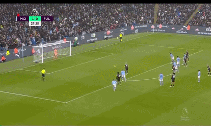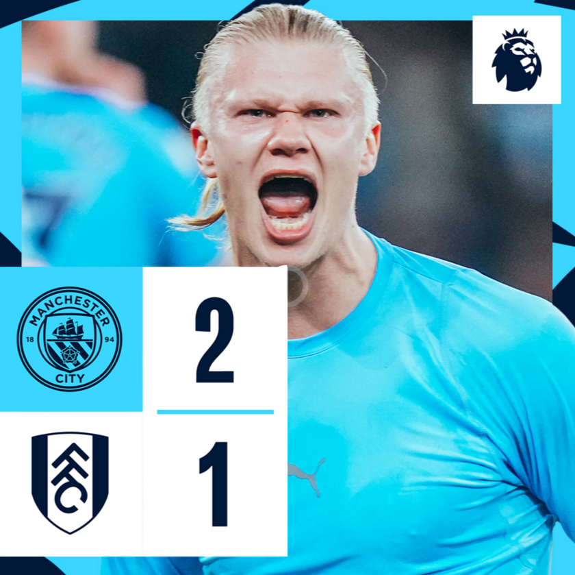最终全场比赛结束,曼城2-1险胜富勒姆。