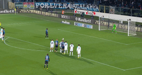 第16分钟,亚特兰大右路角球机会,乱战中奥斯梅恩手球送点!卢克曼主罚点球打入死角!亚特兰大1-0!