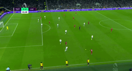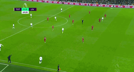第70分钟,库卢塞夫斯基禁区前沿直塞,凯恩插上右肋8码处小角度射门,球飞入左下角,热刺1-2利物浦。