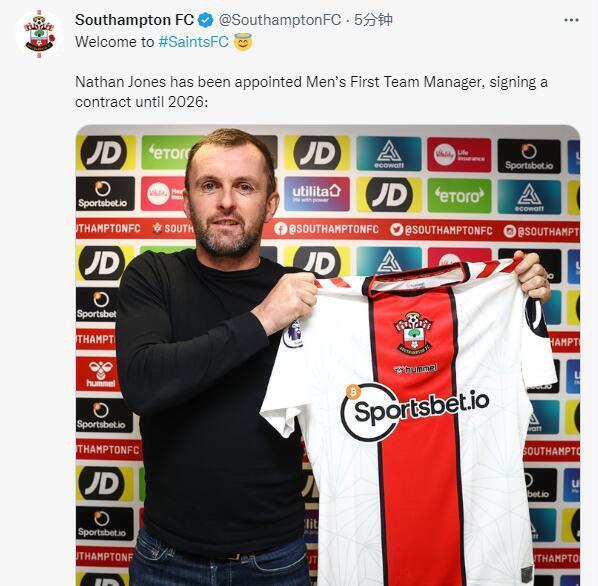 据南安普顿官推发布的消息,圣徒和内森-琼斯签的是一份持续到2026年的合同。