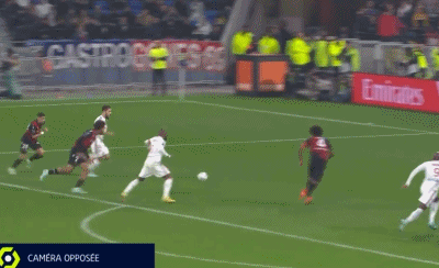 比赛第88分钟,里昂中锋拉卡泽特在禁区停球时不稳,最终踉踉跄跄地接触尼斯球员托迪博后倒地,然而当值主裁判居然直接判罚了点球。