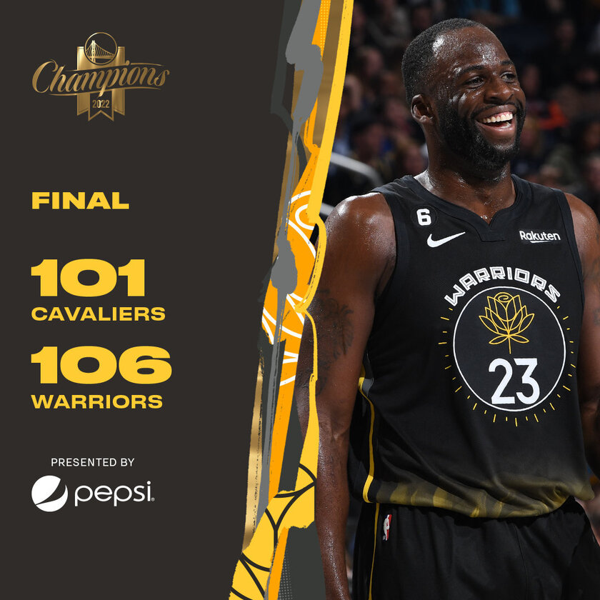 米切尔罚球命中,汤普森左翼命中三分,勇士队追至95-96。米切尔两罚全中再次拉开,勇士队在几次错失追分机会后,库里左翼又中三分,第四节还有1分15秒时双方战成98平。米切尔跳投不中,库里上篮得手,勇士队反超2分。阿伦两罚一中,库里弧顶再中三分,勇士队以103-99领先。米切尔错失三分,库里被犯规两罚一中,第四节还有17.6秒时勇士队以104-99领先。米切尔突破造成格林犯规,两罚全中,骑士队仍落后3分。之后库里和汤普森均两罚一中,勇士队以106-101获胜。