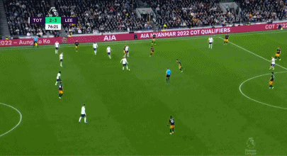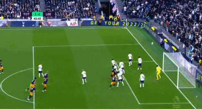 第76分钟,利兹联中场抢断后发起反击,罗卡直塞,罗德里戈插上左肋14码处射门,球飞入右下角,热刺2-3利兹联。