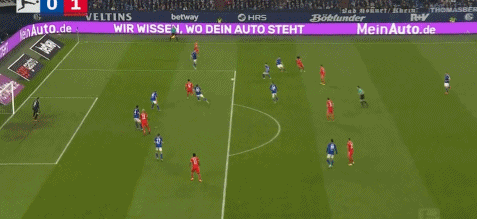 第37分钟,格纳布里分球,穆夏拉脚后跟回敲,格纳布里禁区里低射破门!拜仁1-0!半场战罢,拜仁1-0领先沙尔克。