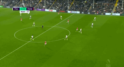 第93分钟,加纳乔左路拿球后传球,埃里克森直塞,加纳乔前插左肋8码处低射破门,曼联2-1领先,加纳乔脱衣庆祝领到黄牌。