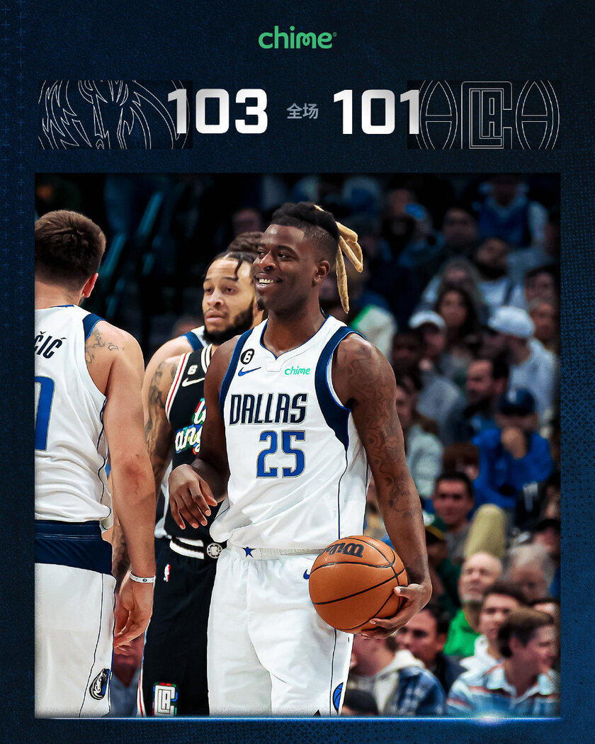 唯彩看球讯 NBA常规赛,达拉斯独行侠队拿到连胜。东契奇得到35分、11个篮板和5次助攻,史密斯得到21分,他们率队在挥霍了25分领先后重新领跑,独行侠队在主场以103-101险胜洛杉矶快船队,独行侠队拿到2连胜。