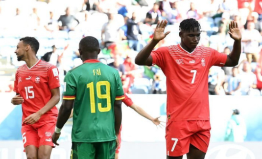 唯彩看球讯 世界杯小组赛,瑞士1-0战胜喀麦隆。恩博洛打进一球,但进球后恩博洛高举双手没有庆祝,因为他出生于喀麦隆。