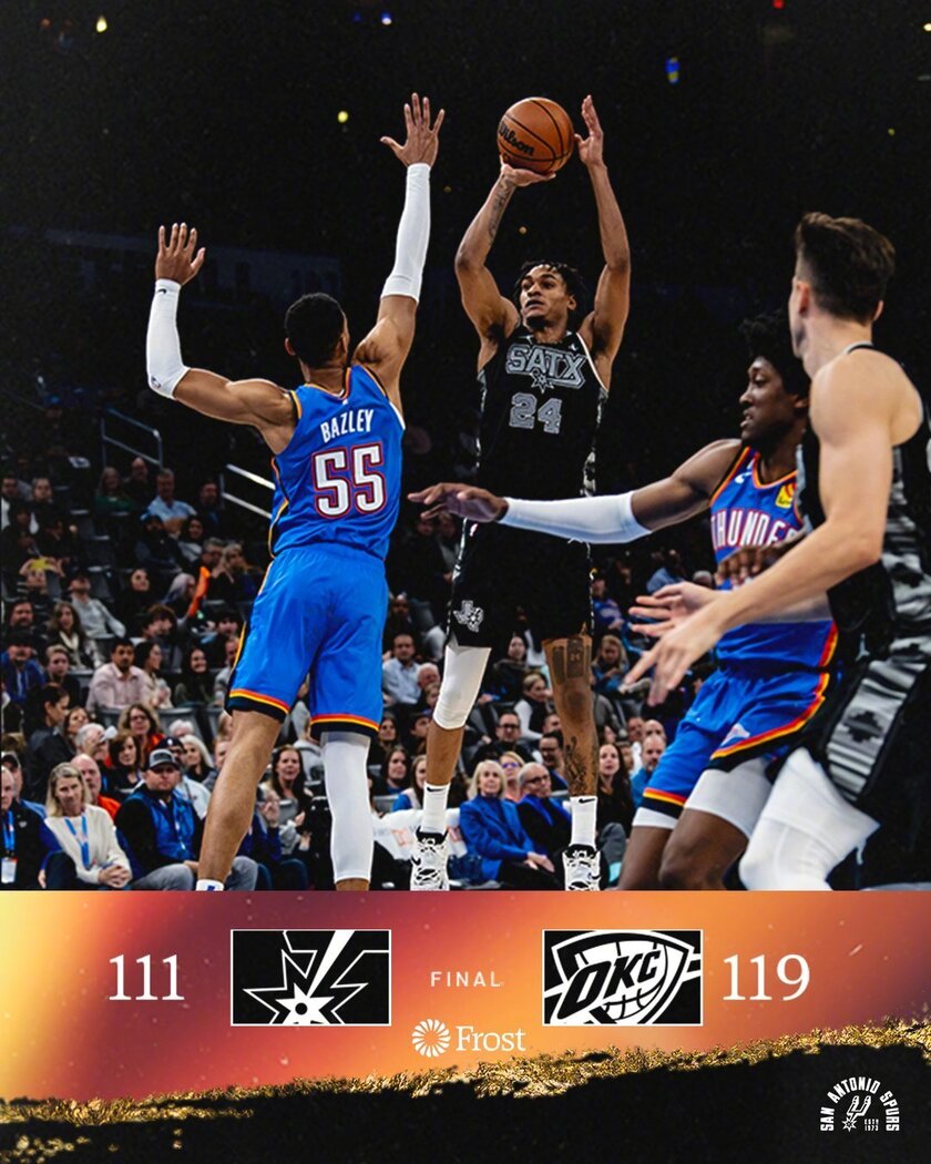唯彩看球讯 NBA常规赛,俄克拉荷马城雷霆队止住连败。虽然亚历山大休战,但杰伦-威廉姆斯得到27分和6个篮板,多尔特得到23分,他们率队下半场上演翻盘好戏,雷霆队逆转最多20分落后,他们在主场以119-111战胜圣安东尼奥马刺队,雷霆队结束2连败,马刺队吞下9连败。