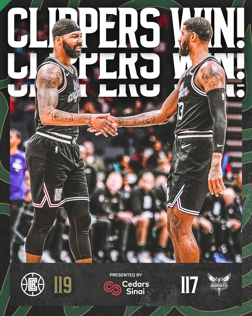 麦克丹尼尔斯三分不中,伦纳德中投得分,快船队在还有1.4秒时以119-117领先。华盛顿跳投不中,黄蜂队惜败。