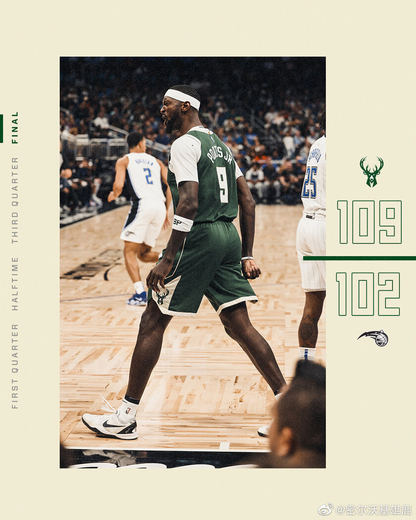 唯彩看球讯 NBA常规赛,密尔沃基雄鹿队拿到连胜。字母哥得到34分、13个篮板和5次助攻,波蒂斯和霍勒迪都送出两双,他们率队前三节确立优势后顶住对手反攻,雄鹿队在客场以109-102战胜奥兰多魔术队,雄鹿队拿到2连胜,魔术队遭遇9连败。