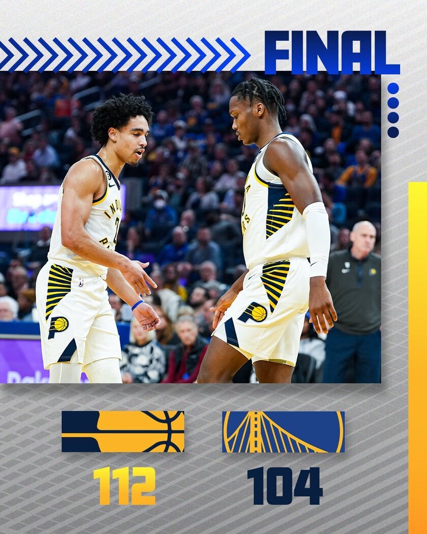第四节,普尔连进两球,他率队打出6-0的反击波,勇士队只落后2分。希尔德命中三分,汤普森保持手感,又进两个三分球,勇士队以93-92反超。希尔德回敬三分,普尔上篮得手,两队战成95平。双方之后交替领跑,内姆哈德手感火热,连中2个三分球,他还助攻杰克逊扣篮,一轮8-0的攻击波让步行者队以107-100领先。库明加突破扣篮,内姆哈德再次跳投命中,步行者队仍领先7分。急于追分的勇士队进攻状态全无,库里连续三分打铁,他们无力回天,步行者队以112-104获胜。