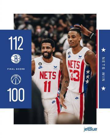 第四节,沃伦和托马斯拿下4分,篮网队以104-92领先。古德温连追4分,托马斯、欧文、哈里斯和杜兰特轮流得分,一轮8-0的小高潮让篮网队以112-96领先。巴顿三分止血无济于事,篮网队以112-100获胜。