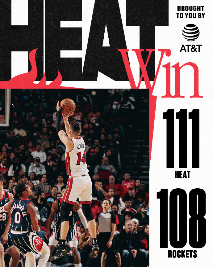 唯彩看球讯 NBA常规赛,迈阿密热火队继续连胜。希罗得到生涯新高41分,巴特勒复出得到20分、10个篮板和7次助攻,他们率队在第四节领先后顶住对手反扑,波特错失扳平三分,热火队在客场以111-108险胜休斯敦火箭队,热火队拿到3连胜,火箭队结束2连胜。