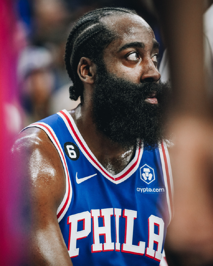 76人队首发阵容:哈登、梅尔顿、哈里斯、塔克、恩比德
