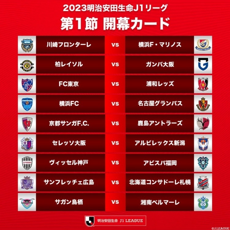 2月17日的揭幕战由川崎前锋对阵横滨水手,首轮各场具体对阵如下: