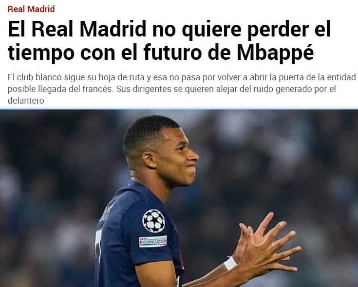 《马卡报》表示,虽然姆巴佩近日再次与皇马联系在一起,但不过与以往不同,皇马似乎不愿意在此浪费时间。