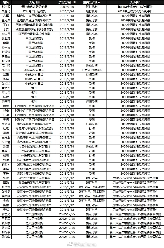 唯彩看球迅 昨日,中国足协就“广东省运会U15假球案”给出了官方处罚公告,其中有6名官员遭到足协官方禁赛。以下是中国足协终身禁赛大名单。