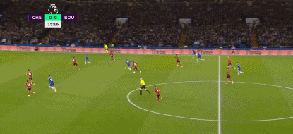 第24分钟,芒特直传,扎卡利亚停球,哈弗茨回传,芒特远射射进球门下角!切尔西2-0!