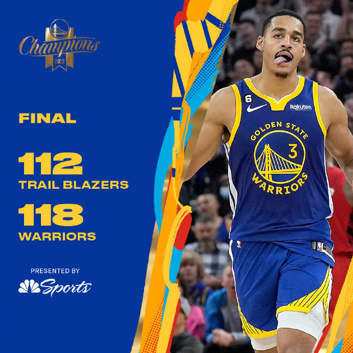 唯彩看球迅 NBA常规赛,金州勇士队延续连胜势头。普尔得到41分、5个篮板和6次助攻,汤普森得到31分和5个篮板,他们率队末节打出小高潮上演翻盘好戏,勇士队在主场以118-112险胜波特兰开拓者队,勇士队收获4连胜。