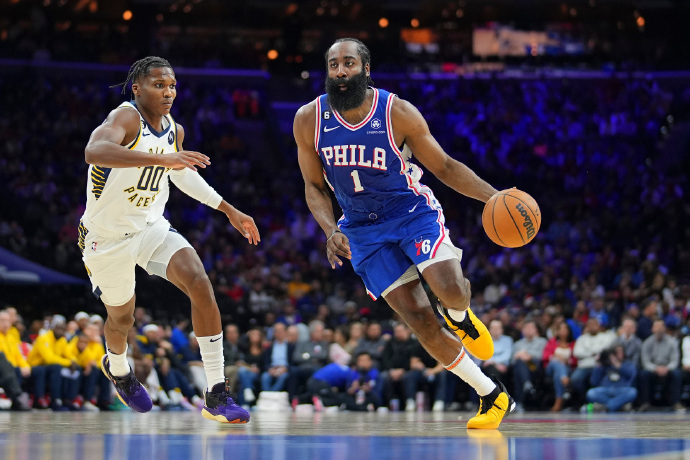 76人队首发阵容:马克西、梅尔顿、哈登、哈里斯、塔克