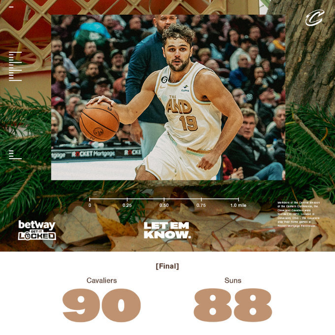 唯彩看球迅 NBA常规赛,克里夫兰骑士队延续连胜。勒韦尔得到21分和6个篮板,米切尔得到20分、6个篮板和9次助攻,他们率队下半场掀起反扑,莫布里投中制胜球,布里奇斯错失扳平球,骑士队在主场以90-88险胜菲尼克斯太阳队,骑士队拿到3连胜,太阳队遭遇4连败。