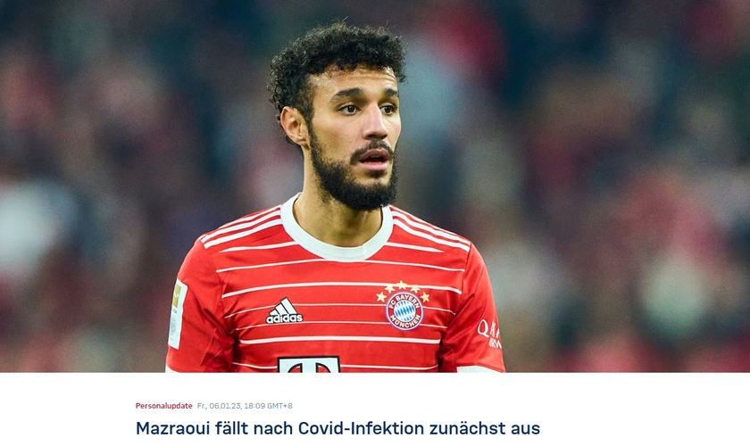 “马兹拉维在世界杯期间新冠检测呈阳性,因此错过了摩洛哥对阵葡萄牙的1/4决赛。在世界杯结束后的检查中,拜仁队医查出马兹拉维患有轻度心肌炎,现在他将进行康复过程。”