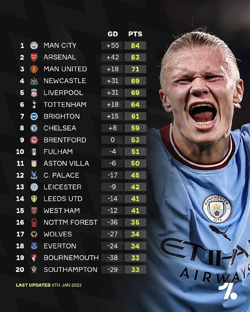 唯彩看球讯 onefootball发布了超级计算机对英超积分排名的最新预测,其中,曼城以1分的微弱优势力压阿森纳夺冠,而纽卡力压利物浦夺得第四(具体如何超过没有说明)。