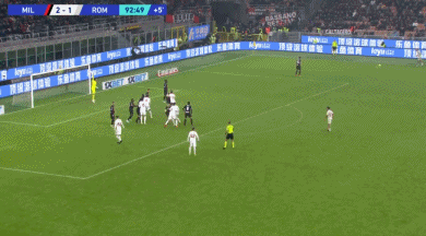 全场比赛结束,AC米兰2-2罗马。