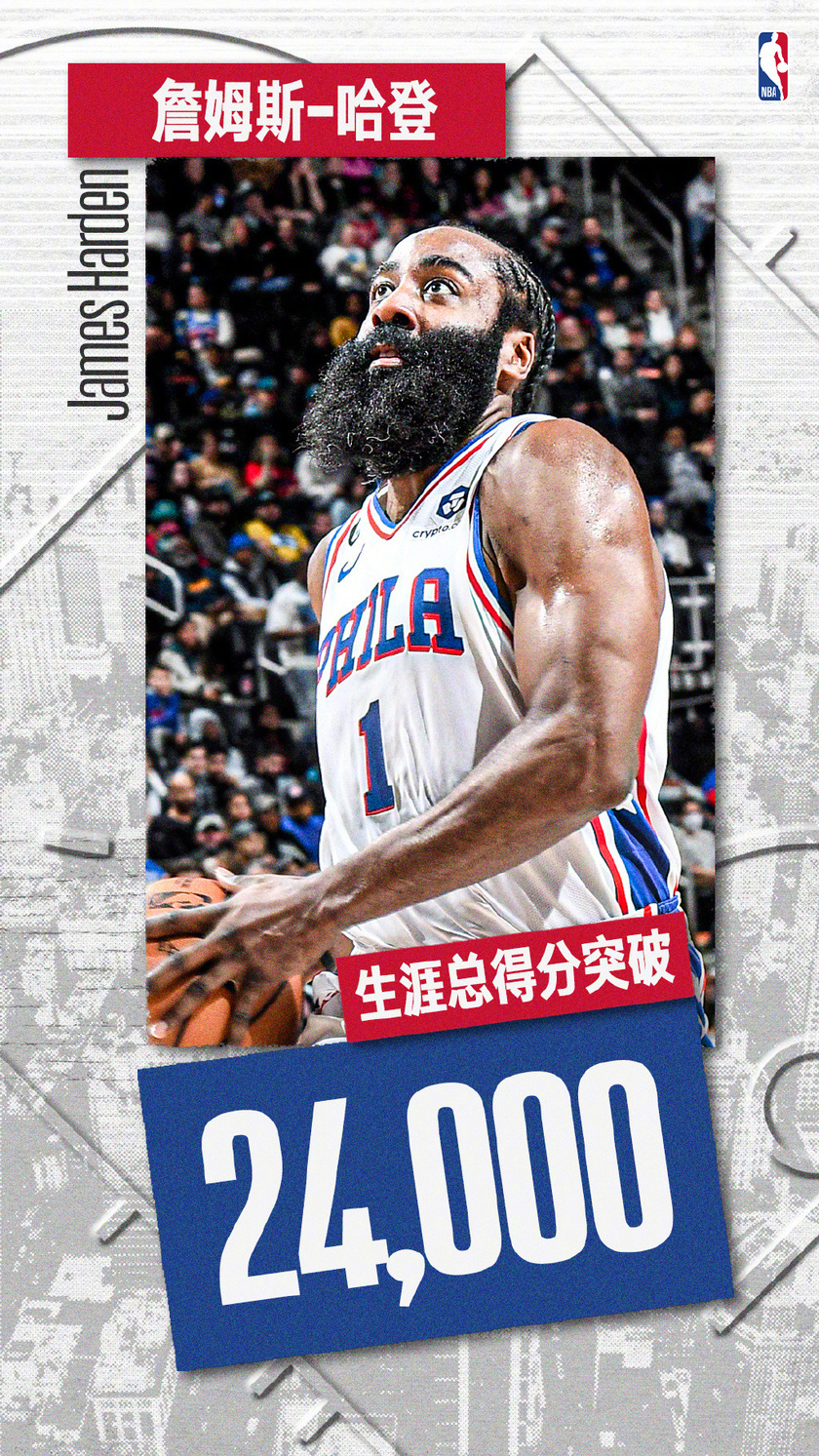 哈登强势扛起球队!三节早早打卡,轻松砍下20分11篮板11助攻的三双数据率队取胜,并迎来职业生涯总得分突破24000分的里程碑!