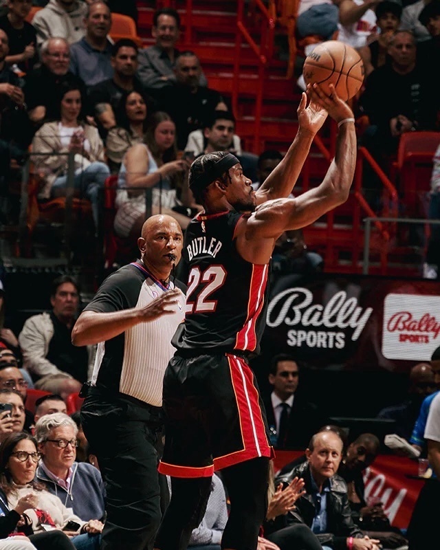 本场热火罚球16中15,前14罚全中,巴特勒最后两罚第一罚投丢。