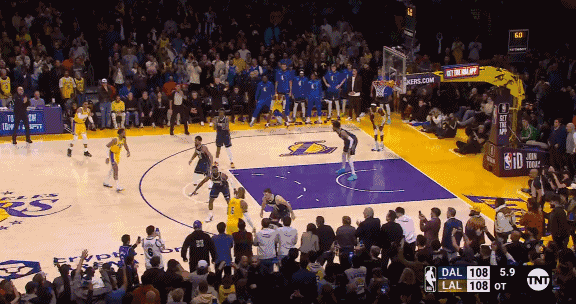 加时1还剩2.4秒时,还是这个回合,詹姆斯上篮不中,东契奇抢篮板时对加布里埃尔犯规,裁判未吹罚。