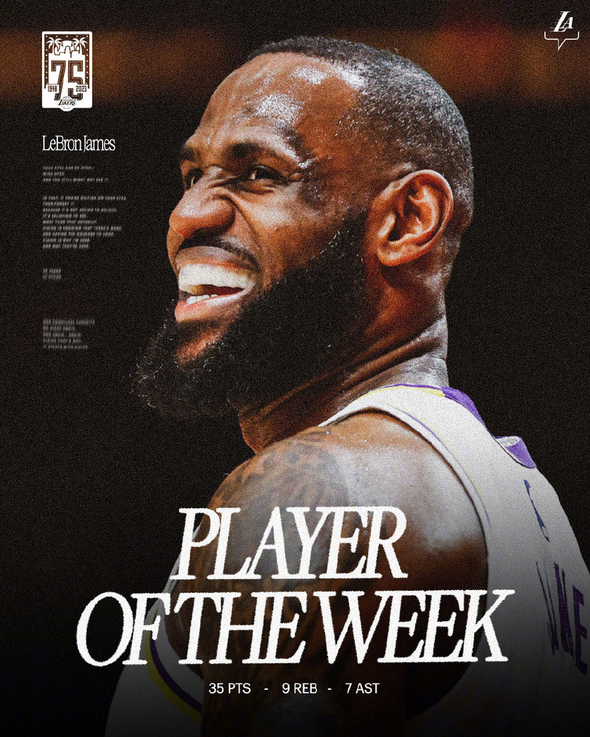 唯彩看球讯 今日,NBA官方公布周最佳球员得主,湖人球星詹姆斯当选西部周最佳。
