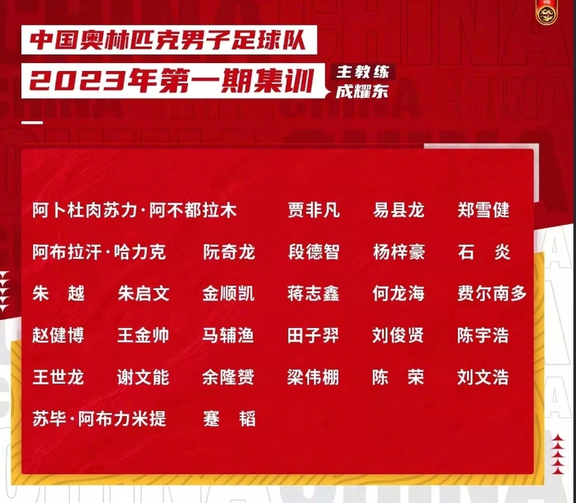唯彩看球讯 官方消息,为备战2024年巴黎奥运会预选赛暨U23亚洲杯,国足U23公布2023年首期集训名单。