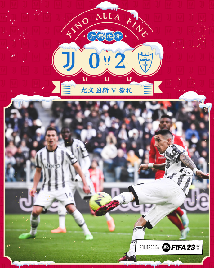 全场比赛结束,尤文在主场0-2输给蒙扎。