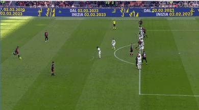 第24分钟,萨勒马科尔斯分球到右路,卡拉布里亚传中,吉鲁力压埃里奇头球破门,米兰1-2!