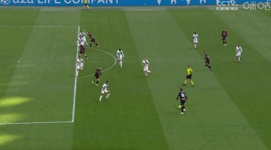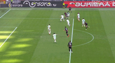 第30分钟,哈米德-特劳雷角球传中,贝拉尔迪头球破门,萨索洛3-1!