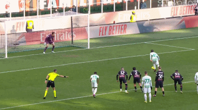 第46分钟,劳里恩特快速突入禁区接应队友直塞被卡拉布里亚撞倒,主裁判判罚点球并黄牌警告了卡拉布里亚,劳里恩特亲自主罚点球命中,萨索洛4-1领先。