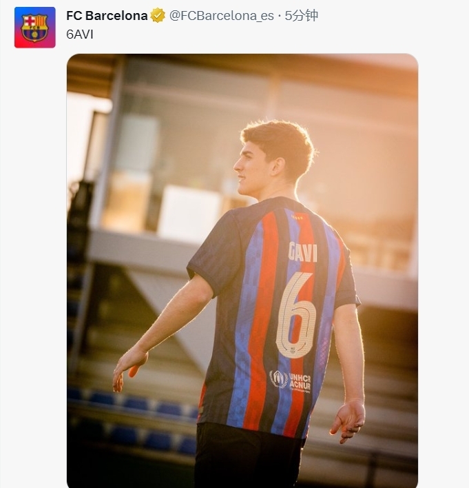 巴萨官推同时更新了照片,加维从此前的30号改穿6号。
