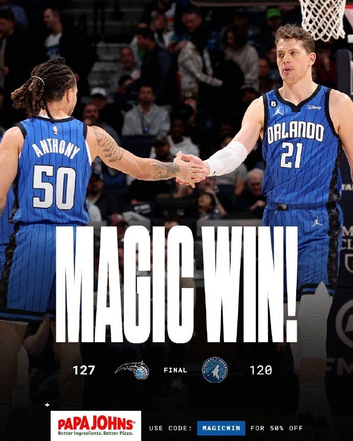 魔术(22-32):安东尼20分8板6助、大瓦格纳19分、班凯罗11分8板4助、富尔茨15分4板3助2断、班巴11分4板2助、波尔14分3板、艾萨克9分3板、小瓦格纳9分6板4助。