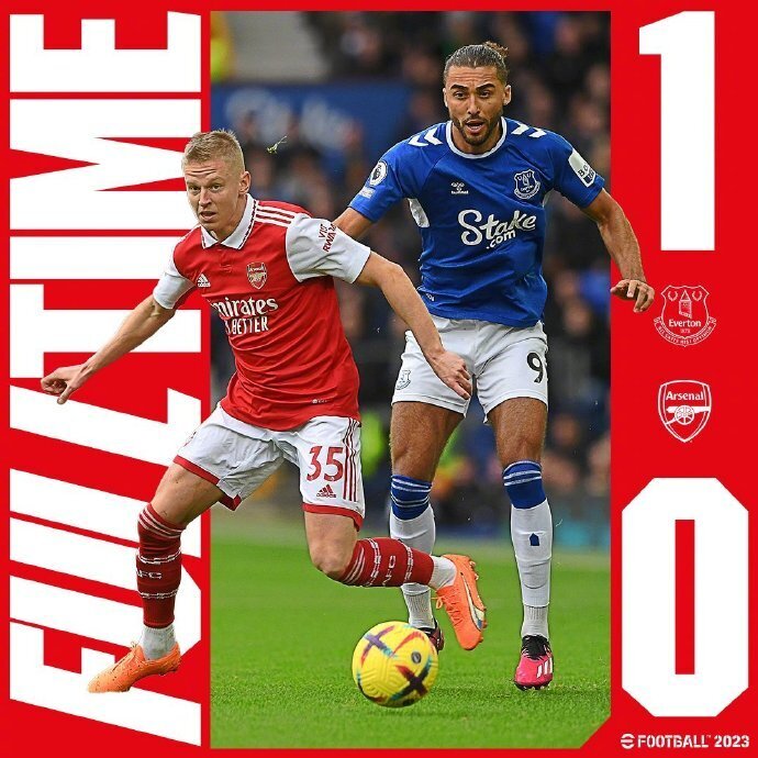 全场比赛结束,埃弗顿1-0击败阿森纳。
