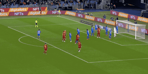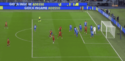 第2分钟,迪巴拉开出左路角球至禁区内,伊巴涅斯前点头球攻门,球弹地后窜入网窝,罗马1-0领先!