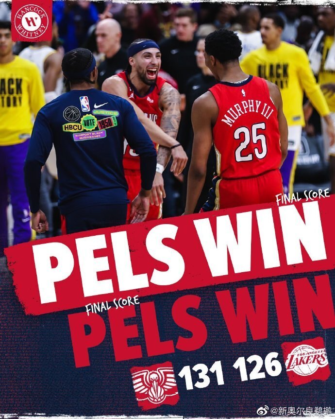 下半场两队继续展开对攻,三节结束时得分均超过100分,鹈鹕也逐渐将比分追了回来,末节鹈鹕延续势头一波11-2的攻势直接实现反超,比赛悬念保持到了最后,关键时刻英格拉姆连续得分帮助球队拿下胜利,最终鹈鹕131-126力克湖人结束了10连败。