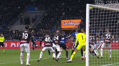 第34分钟,恰尔汗奥卢角球传中,劳塔罗跃起头球攻门,国米1-0!