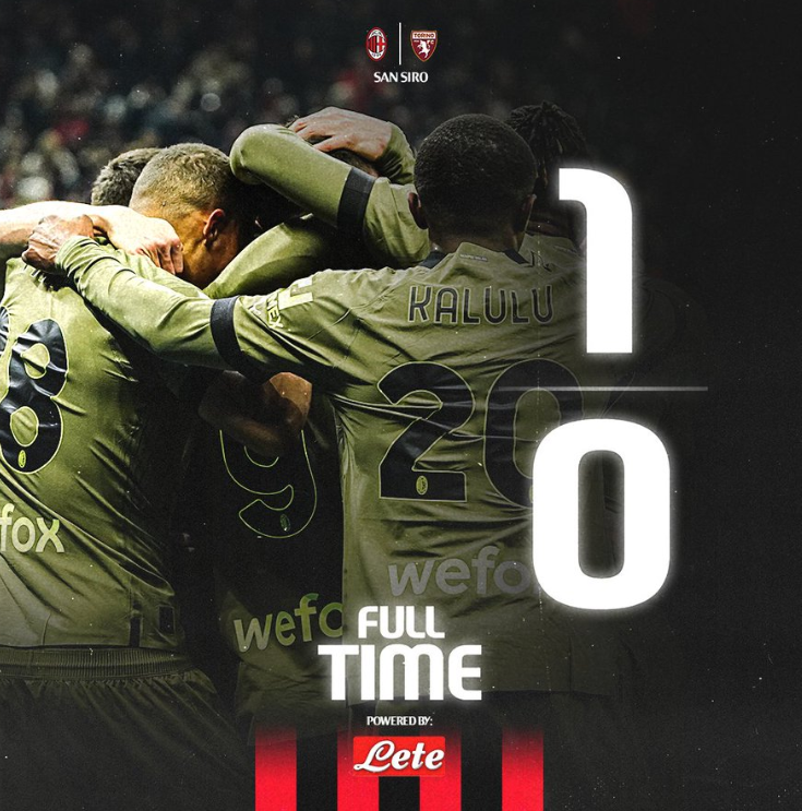 第62分钟,特奥左路传中,吉鲁力压科菲-吉吉头球破门,米兰1-0打破场上僵局。